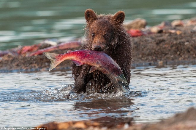 Nhiếp ảnh gia Sergey Ivanov đã ghi lại những khoảnh khắc khi những chú gấu con đang học mẹ cách bắt cá. Những hình ảnh thật ấn tượng được ghi lại ở Hồ Kuril ở Kronotsy Reserve - Nga.