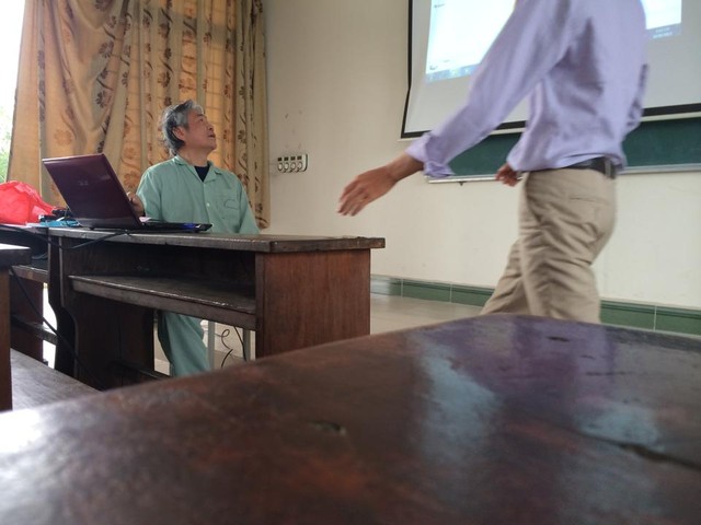 VBF-Dù thân mang trọng bệnh nhưng thầy vẫn cố gắng đi dạy vì sinh viên. Hình ảnh này chắc có lẽ là hình ảnh duy nhất của 1 nhà giáo đúng nghĩa hết lòng vì giáo dục. Hình ảnh người thầy mặc áo bệnh nhân trên giảng đường được chia sẻ trên fanpage của Đại học Bách Khoa đang nhận được rất nhiều sự quan tâm.