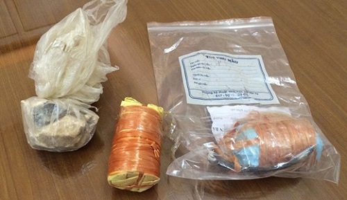 Hai quả mìn tự chế cảnh sát thu giữ tại hiện trường.