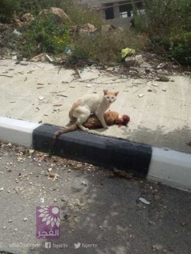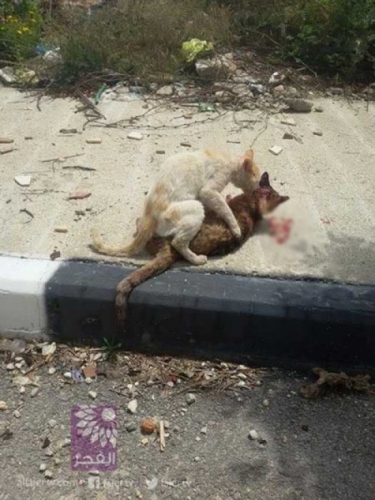 Theo thông tịn từ cư dân mạng, ngày 15/4, một chú mèo bị ô tô đâm chết nằm giữa đường phố. Ngay sau đó một chú mèo khác xuất hiện và cố gắng kéo bạn vào vỉa hè. Tại đây, chú mèo đã liên tục tìm cách đánh thức bạn mình tỉnh dậy nhưng không thành công. Chú mèo nọ buồn bã bỏ đi.