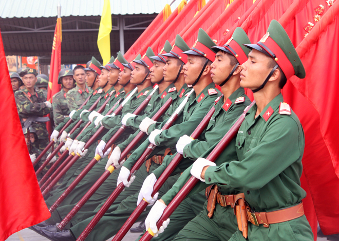 Ngày 20/4, ngay từ sáng sớm, hàng nghìn cán bộ, chiến sĩ đã có mặt tại Trường quân sự Quân khu 7 để hợp luyện diễu binh, diễu hành cho lễ 30/4.