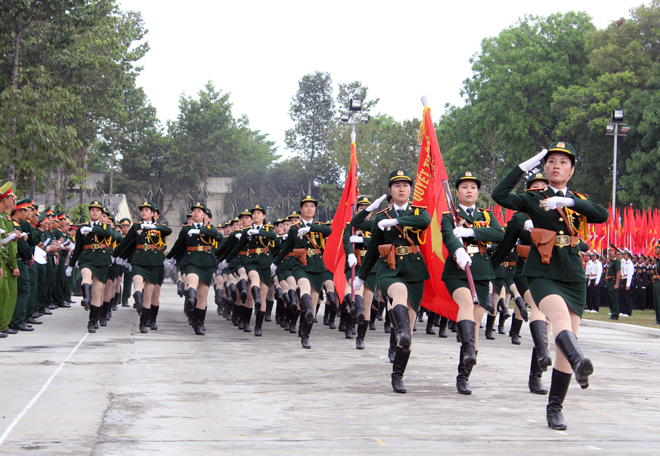Có khoảng 1/3 người tham gia diễu binh là nữ. Họ nằm trong các đội hình "Nữ du kích miền Bắc", "Nữ du kích miền Nam", "Nữ sĩ quan Bộ tư lệnh thông tin"...