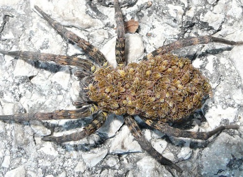 Nhện sói là loài nhện có khả năng ấp tới 100 quả trứng trên cơ thể. Nhện con sống bám trên cơ thể nhện mẹ cho tới khi trưởng thành.