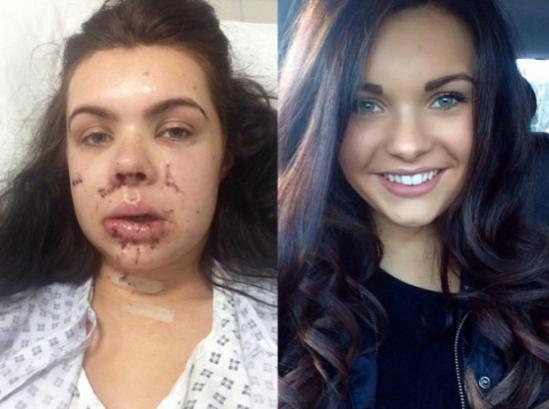 Bà Allyson mẹ của Knapton cũng cho biết giờ đây cô không thể mỉm cười v́ những mũi khâu chi chít trên mặt và xung quanh miệng. “Họ nói rằng con gái tôi bị các vết thương rất sâu ở vai cổ, một vết thương 2inch và 1 vết 3inch do mảnh chai găm vào”, bà cho biết.