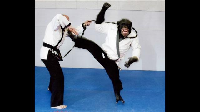 Loài này chính xác phải gọi là Tinh Tinh mới đúng. Chúng được một thầy dạy karate hướng dẫn và vô cùng thành thục. Tuy chỉ là những cú đá đơn giản nhưng chắc chắn hơn hẳn các loài khỉ khác, nhất là Khỉ trường sơn mà chúng ta đều biết.