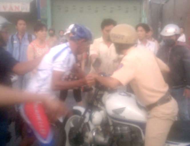 Trong hình là cảnh tượng một trung úy Cảnh sát giao thông đang dắt xe mô-tô biển xanh thì bị người dân gần chợ Phước Thái (xã Phước Thái, huyện Long Thành, Đồng Nai) chặn lại trong khi viên cảnh sát cố thoát ra khỏi đám đông. Đoạn Clip cũng ghi lại cảnh tượng một nam thanh niên đang nằm quằn quại trên quốc lộ 51.
