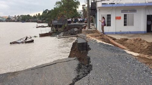 Nghe tiếng kêu cứu, người dân địa phương khẩn trương đến hiện trường, hỗ trợ đưa 4 người trong gia đình bà Trang lên bờ an toàn.Tại hiện trường, đoạn sạt lở dài 30m, ăn sâu vào đất liền 7m, bao gồm tuyến đường bê-tông nông thôn rộng 3m. Căn nhà cấp 4, ngang 4,5m, dài 10m của gia đình bà Trang chìm hẳn dưới lòng sông cùng nhiều tài sản có giá trị và chiếc xe máy. Vụ sạt lở không gây thương vong về người nhưng thiệt hại tài sản khoảng 120 triệu đồng.