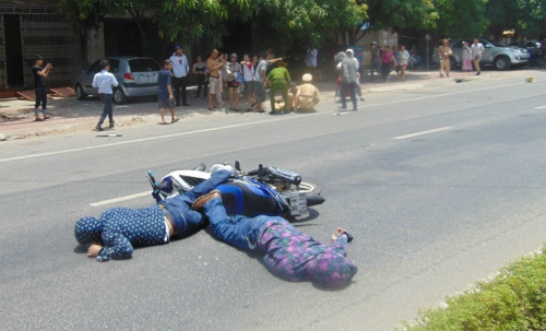 Ba người nằm bất tỉnh tại hiện trường sau cú va chạm mạnh - Ảnh: Đức Hùng.