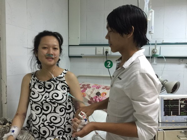 nhưng nghe bé khóc em hạnh phúc lắm, em thương con quá vì chưa được bú sữa mẹ, vài ngày nữa ra viện em sẽ cho con bú bù, con mà không có sữa mẹ tội lắm. Em đã đặt cho con tên là Khánh Quyên, tên đẹp lắm phải không. Lúc này em hơi mệt nhưng nghĩ đến con mình phải cố gắng nhiều hơn nữa". Các bác sĩ chưa thể nói trước về tình trạng bệnh của chị Huệ.