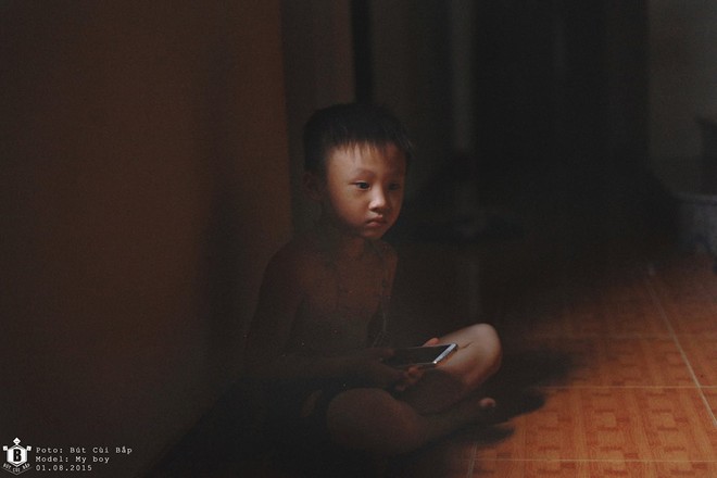"Nhiều ông bố bà mẹ chọn cách đưa cho con đồ chơi công nghệ để nó im lặng, để nó không khóc và việc trông trẻ sẽ như phơi quần áo: Phơi ra lúc sáng đi làm rồi trưa về cất chúng...", tác giả bộ ảnh, chàng trai 23 tuổi, Đỗ Xuân Bút chụp và tự dẫn dắt về câu chuyện "đứa trẻ công nghệ" của mình như vậy.