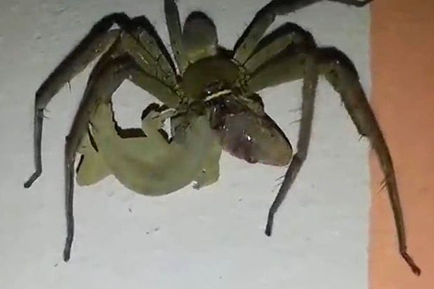 Old  Default Cận cảnh thằn lằn xấu số làm mồi trong bụng nhện khổng lồ