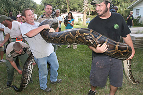 Loài mãng xà Miến Điện từng sinh sống ở Florida Everglades, tuy nhiên ngày nay chúng gần như biến mất vì bị săn bắt lấy thịt.