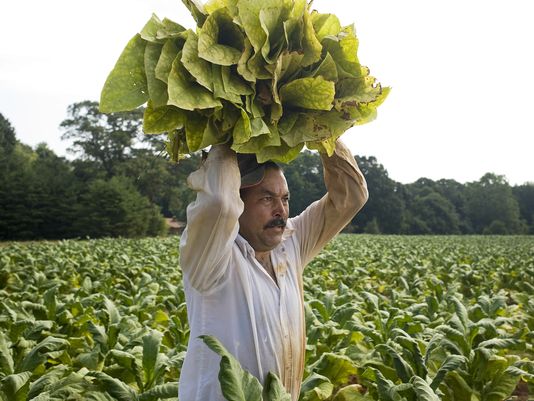 Một nông dân Mễ đang làm việc trong trang trại ở North Carolina – Photo Courtesy: Davis Turner, Bloomberg