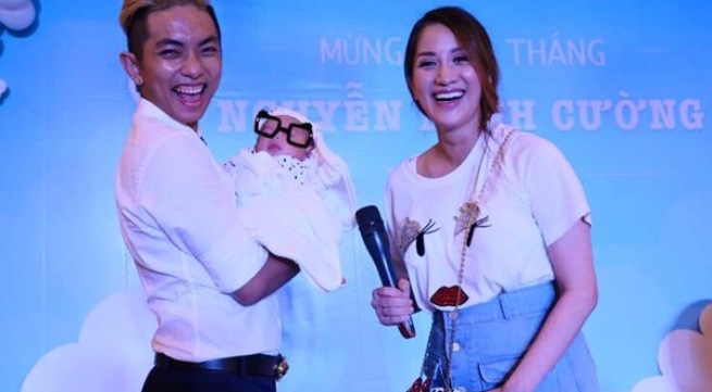 Cặp đôi vui vẻ trong ngày đầy tháng con.