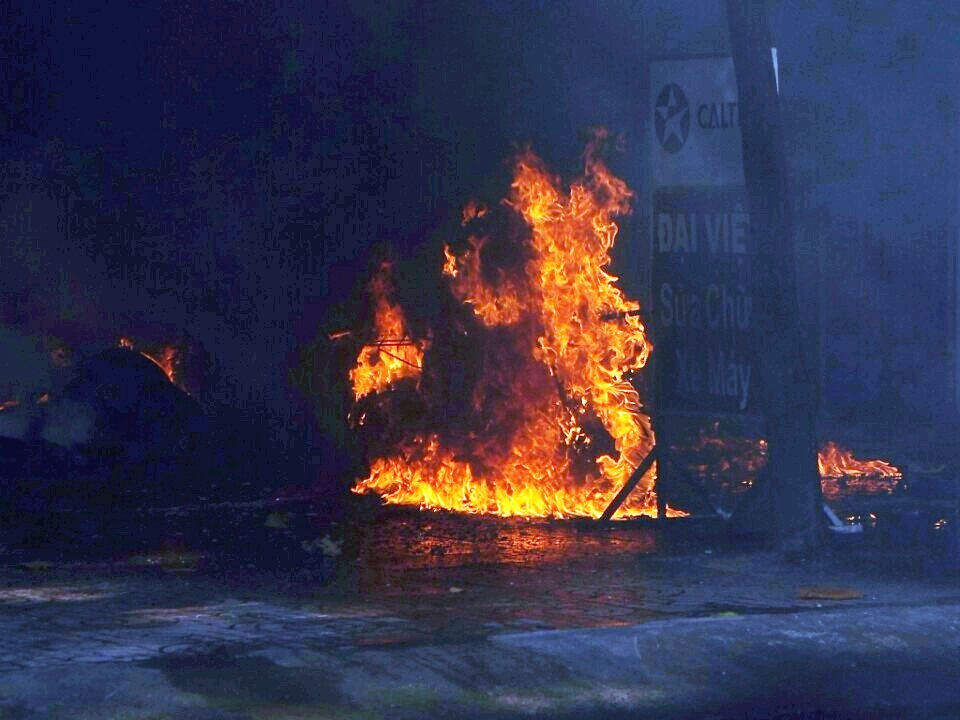 Vào thời gian trên, khi những người thợ tại đây đang chuẩn bị sửa xe máy cho khách thì bỗng dưng ngọn lửa bùng lên, cháy ngùn ngụt.