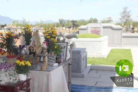 Bàn thờ tạm ông Nguyễn Bá Thanh. Cạnh bàn thờ tạm là mộ ông Nguyễn Bá Thanh đã xây dựng tươm tất.