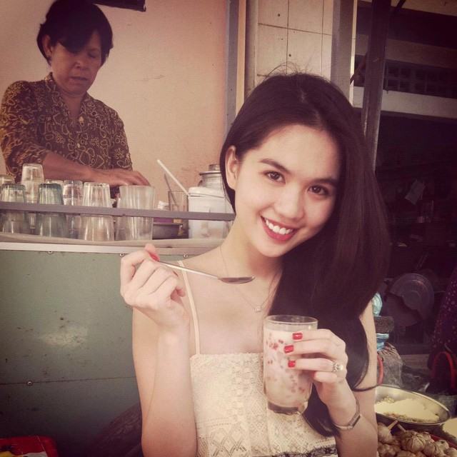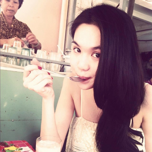 Ngọc Trinh ngồi ăn chè ở một hàng quen tại Cần Thơ