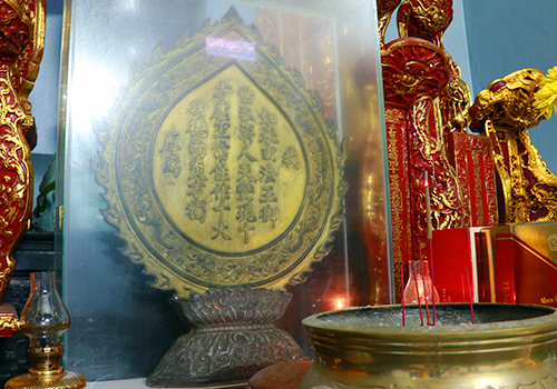 Theo tài liệu còn ghi lại, chùa Tam Thai được xây dựng đầu thế kỷ 17, được vua Minh Mạng 3 lần ngự dụ vào các năm 1825, 1827 và 1837. Nhưng điều ít người biết là nơi này đang giữ báu vật - lá đề có khắc những dòng chữ rập theo ngự bút của vua Minh Mạng.