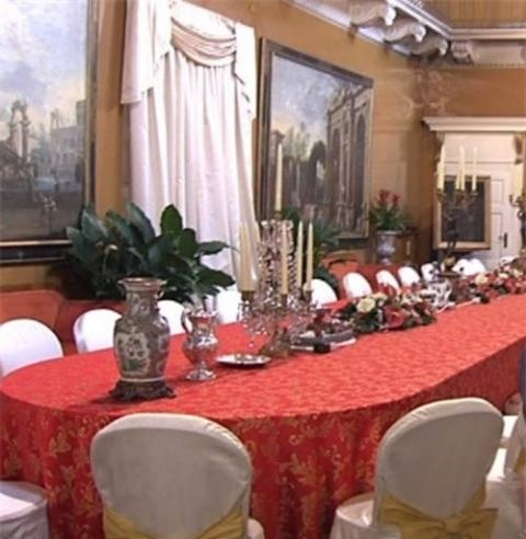 Nhưng khi Friedman vào căn pḥng đó ở Villa Arcore, các bộ đồ và những bức tượng khêu gợi như người ta đồn đă không c̣n nữa. Trong căn pḥng có một chiếc bàn ăn dài chừng 18 mét, đủ để chứa 36 người. Các bức tường của căn pḥng được trang trí nhiều chiếc gương cảnh và tranh cổ đẹp mắt. Ngoài ra pḥng c̣n có một sân khấu để dành cho một nhạc nhỏ biểu diễn.