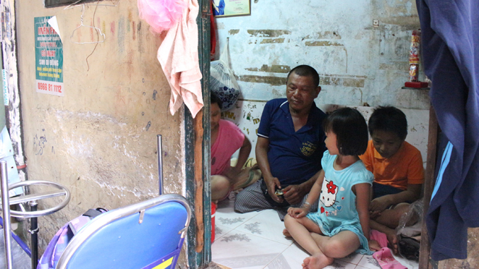 Bốn cha con anh Nguyễn Công Tuấn sống chen chúc tại ngôi nhà tí hon ở con hẻm 107 đường Bùi Viện.