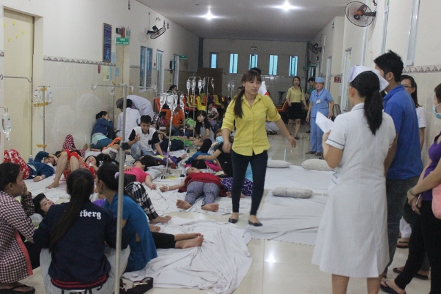 Do số lượng công nhân nhập viện cấp cứu quá lớn nên Bệnh viện huyện Bến Cát và Bệnh viện Đa khoa tỉnh Bình Dương rơi vào tình trạng quá tải. Công nhân nằm la liệt hành lang lối đi, hội trường trong bệnh viện.