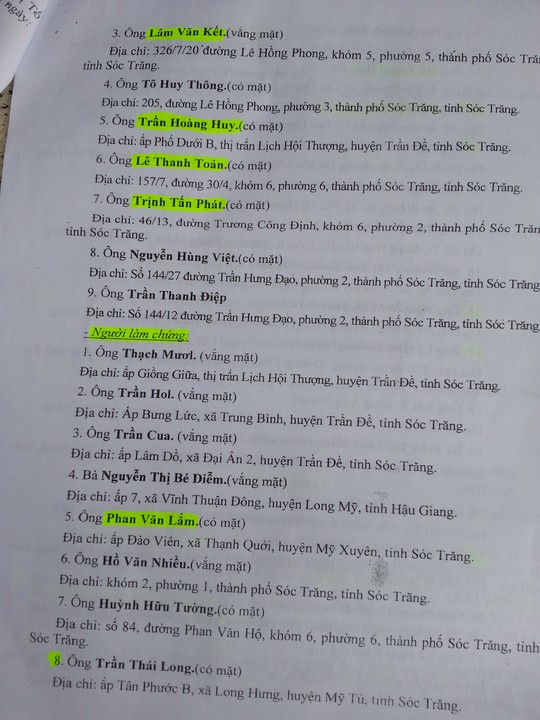 Tương tự, ông Huỳnh Thế Đức (Phó Viện Trưởng VKSND tỉnh Sóc Trăng), ông Phan Văn Lắm (nguyên Phó Phòng PC45 Công an tỉnh Sóc Trăng) cùng 26 cán bộ, lãnh đạo của Cơ quan CSĐT Công an tỉnh Sóc Trăng và VKSND tỉnh cũng được hoán đổi tư cách tham gia tố tụng, dẫn đến vụ án có con số người làm chứng “khủng” đến bất ngờ.