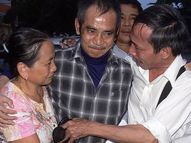 Ông Huỳnh Văn Nén (áo đen) được tại ngoại.
