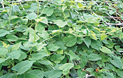 Đây là rễ cây hà thủ ô thường được phơi khô, tán thành bột mịn. Theo y học Trung Quốc, hà thủ ô có tác dụng kích thích mọc tóc khiến tóc dày hơn.