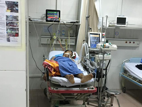 Ngay khi tiếp nhận, các bác sĩ đã điều trị, nẹp cột sống cổ, rửa vết thương; đặt ống nội khí quản, cho bệnh nhân thở máy...