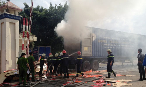 Lo sợ ngọn lửa cháy lan sang hàng chục chiếc xe đang đậu bên cạnh, tài xế điều khiển xe ra phía trước cổng của công ty và huy động mọi người dập lửa. Hàng chục bình chữa cháy mini xịt vào đám cháy nhưng do thùng container chứa nhiều giấy nhập khẩu nên việc dập lửa tại chỗ bất thành. Phần đầu xe đầu kéo nhanh chóng được tháo rời ra để tránh bị cháy.