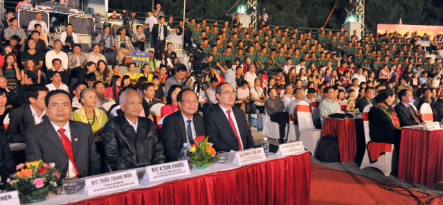 Ủy viên Bộ Chính trị, Chủ tịch UBTW MTTQ Việt Nam Nguyễn Thiện Nhân, Ủy viên Bộ Chính trị, Phó Chủ tịch Quốc hội Tòng Thị Phóng, Bộ trưởng Văn hóa Thể thao và Du lịch Hoàng Tuấn Anh, các vị trong Ban Thường trực UBTWMTTQ Việt Nam, cùng đại diện các Bộ, Ban, ngành Trung ương, đại sứ của 12 quốc gia, các già làng, trưởng bản, chức sắc tôn giáo, người có uy tín đại diện cho cộng đồng 54 dân tộc trong đại gia đình dân tộc Việt Nam.