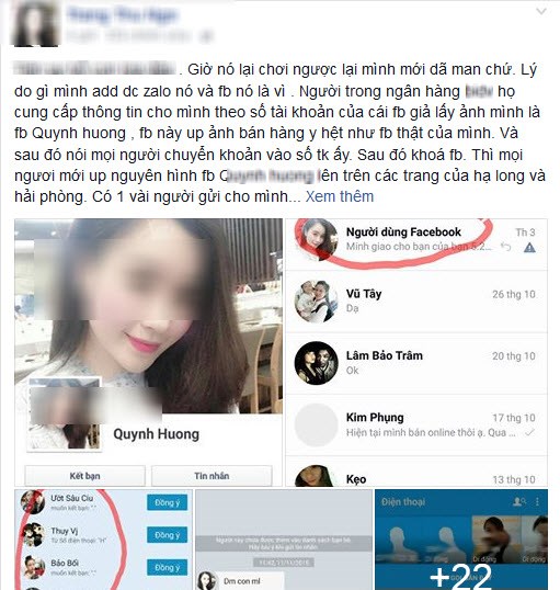Chủ nhân Facebook bị Q.H mạo danh là N.T.T.T. Hot girl Thanh Hóa này cho biết nhờ người làm bên ngân hàng truy ra được tên gốc và số điện thoại của kẻ giả mạo.