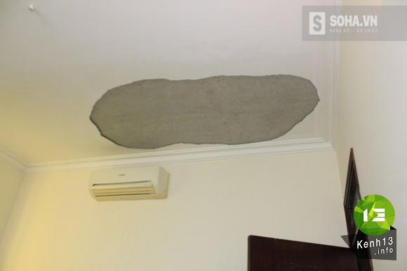 Có mặt tại hiện trường, theo quan sát của PV Báo điện tử Trí Thức Trẻ, căn hộ 1502 có diện tích lớn, gồm 3 phòng ngủ, 1 phòng khách và 1 phòng bếp. Một trong 3 phòng của căn hộ đã xảy ra sự việc một mảng trần rộng khoảng 3m2 rơi xuống, để lại một vết lõm to. Phía bàn, sàn nhà vương vãi nhiều mảnh vữa to như chiếc đĩa loại lớn, nằm chỏng chơ trên sàn. Những người sống trong căn hộ này vẫn chưa hết hoảng sợ.