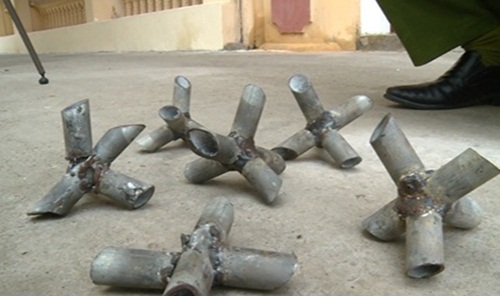 Các đối tượng tự hàn cắt tự chế ra chông bẫy ô tô từ ống sắt phi 21.