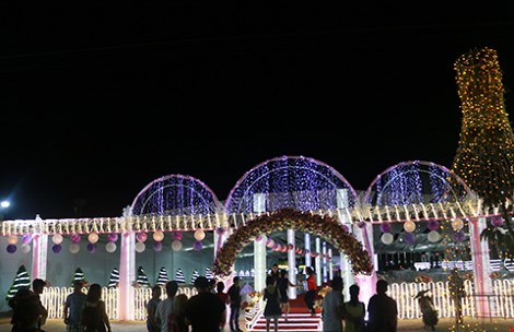 Trong quá trình dựng, nhiều người dân đã đến chiêm ngưỡng, chụp ảnh kỷ niệm bên cổng cưới đình đám này.