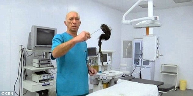 Cụ thể, phần tóc dài 17 cm nằm trong dạ dày của bé gái, trong khi phần đuôi tóc dài tới 35 cm vắt xuống ruột.