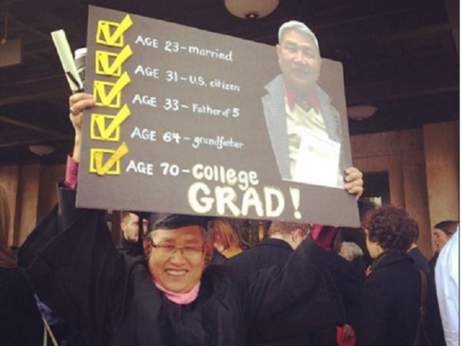 Hình ảnh ông Tap Van Kieu (sau đây gọi là ông Kiều) giơ tấm bảng tốt nghiệp đại học ở tuổi 70 đã được chia sẻ trên khắp các mạng xã hội và trở thành nguồn cảm hứng cho nhiều người ở Mỹ, theo The Huffington Post.