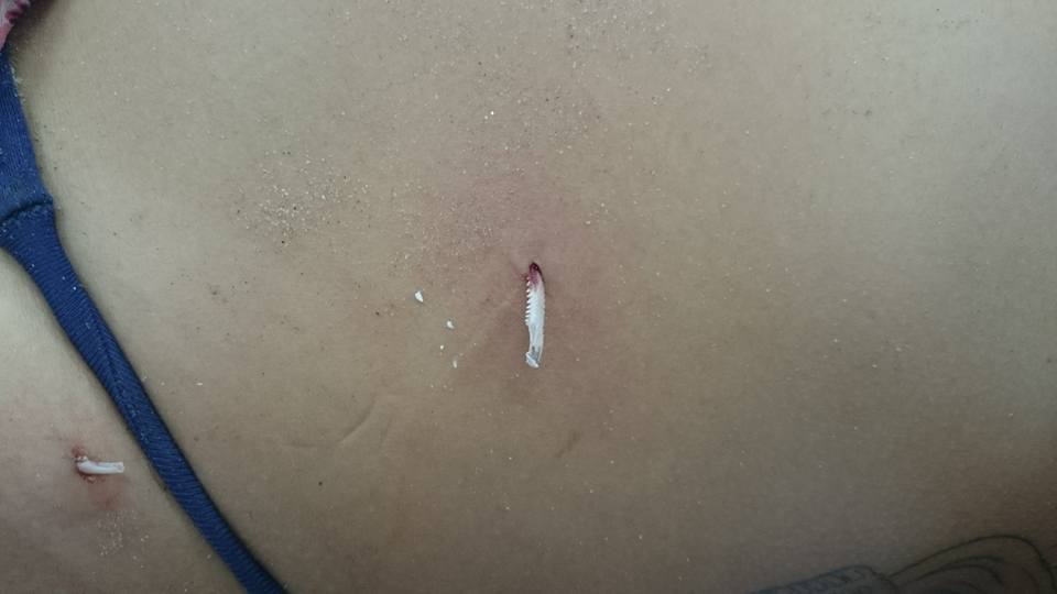 Cận cảnh hình ảnh con cá trê đâm vào da thịt của người phụ nữ đáng thương