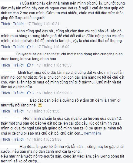 Tuy chỉ là mẩu chuyện nhỏ nhưng làm người đọc cảm thấy mát lòng và thêm yêu Sài Gòn hơn bao giờ hết. Bất ngờ hơn nữa, đây không phải là người duy nhất chứng kiến câu chuyện đẹp xảy ra tại nơi làm việc của bác bảo bệ. Ngay sau khi câu chuyện được đăng tải, hàng chục cộng đồng mạng cũng chia sẻ những kỉ niệm đặc biệt với bác bảo vệ này.