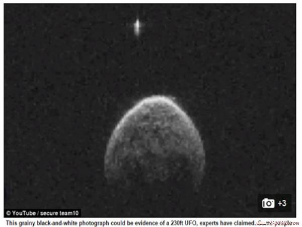 Nhưng, do hình ảnh có độ phân giải thấp nên vật thể bị nhòe và khó nhìn rõ hình dạng. UFO được cho là đang bay tới một tiểu hành tinh khổng lồ đang xoay tròn giữa không gian.