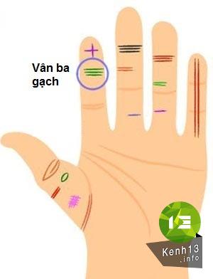 Trên ngón tay trỏ có các đường ngang gọi là vân đốt ngón tay. Người nào có ba vân đốt ngón tay thì cả đời sẽ không thiếu tiền, những may mắn thường đến một cách bất ngờ. Ví dụ, người con trai có thể cưới được người vợ có rất nhiều tiền vv…
