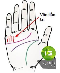 Tại phần phía dưới của ngón út và ngón đeo nhẫn có những đường xọc nhở hởi nghiêng song song chính là vân tiền tài.