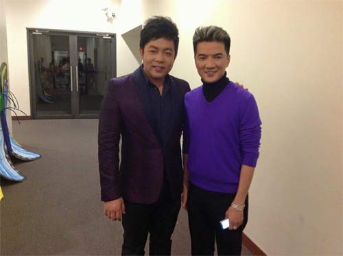 Quang Lê chụp ảnh cùng Đàm Vĩnh Hưng khi cả hai cùng tham dự trong một chương trình.