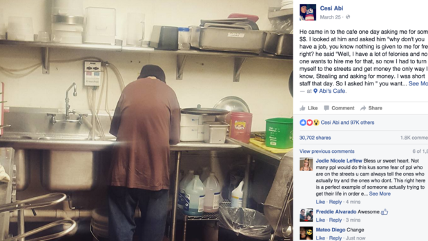 Thế nhưng điều đó không ngăn cản được Abigail – người đã hạ quyết tâm giúp đỡ Marcus dù điều kiện của cô không quá dư giả để thuê người làm. Sau lần”kỳ ngộ” này, người đàn ông vô gia cư được thuê rửa chén bát 2 giờ mỗi ngày.
