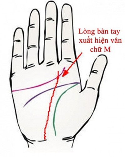 Lòng bàn tay xuất hiện vân chữ M, điều này chứng tỏ bạn có tham vọng trong sự nghiệp và phấn đấu không ngừng, không đạt mục tiêu quyết không từ bỏ, gần 40 tuổi bạn sẽ đạt được thành công vang dội.