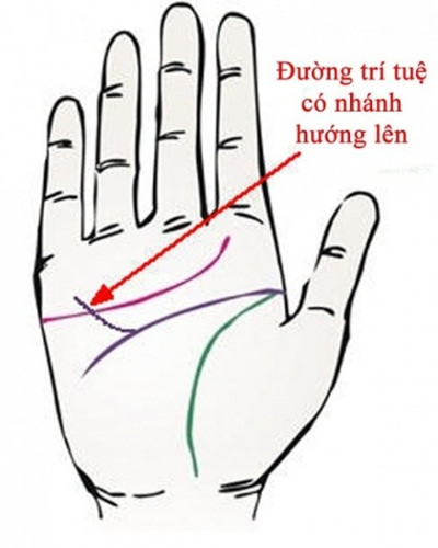 Nếu gốc của đường trí tuệ có nhánh hướng lên, điều này chứng tỏ đầu óc của bạn nhanh nhạy trong kinh doanh, bạn yêu tiền và rất nhạy bén, bạn biết nắm chắc cơ hội và thường thu về nguồn lợi lớn.