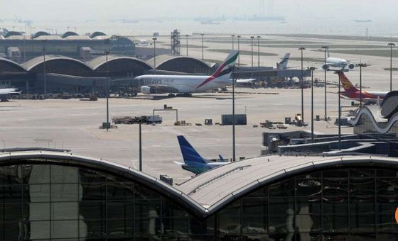 Máy bay hãng hàng không Emirates tại sân bay quốc tế Hong Kong.