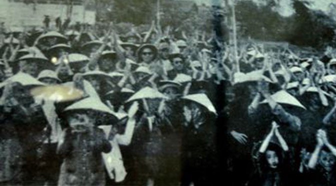 Vụ Bản, Thành Nam, 200 phụ lăo, thiếu niên chít khăn tang trắng tử thủ đất đai nhà bị 500 côn an, bộ đội càn quét đánh đập. Khăn tang trắng nhuộm máu dân đen rơi văi khắp cánh đồng Vụ Bản!