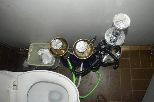 Bình hút shisha được nhân viên mang vào nhà vệ sinh cất giấu.