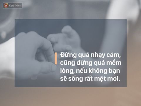 Đừng quá nhạy cảm, cũng đừng quá mềm lòng, người quá nhạy cảm và mềm lòng sống sẽ rất mệt mỏi. Một câu người khác tùy tiện nói cũng có thể khiến bạn phải miên man suy nghĩ suốt cả ngày. Nhạy cảm và mềm lòng đều là vì quá để ý đến người khác, sống mà không biết nghĩ cho mình. Trên đời không có nhiều người biết đặt mình trong hoàn cảnh của người khác đến vậy đâu, sự tốt bụng của bạn sẽ khiến kẻ khác "sinh hư", "được đằng chân mà lân đằng đầu", quá quan tâm đến cảm nhận của người khác, chính bạn sẽ là người phải chịu khổ.